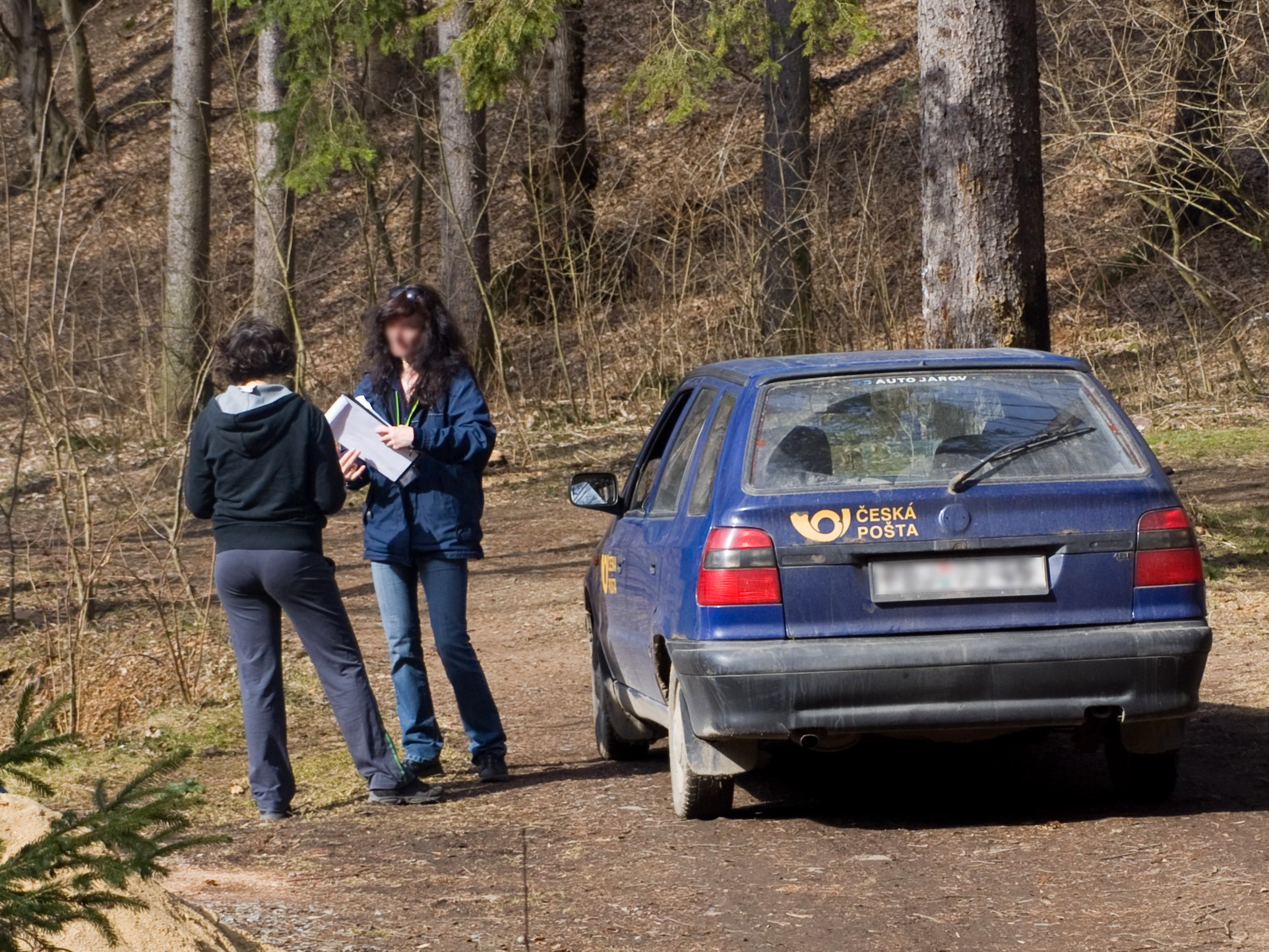 Fotografie + Čeština: Pošťačka předává obyvatelce chaty sčítací archy pro Sčítání lidu, domů a bytů 2011