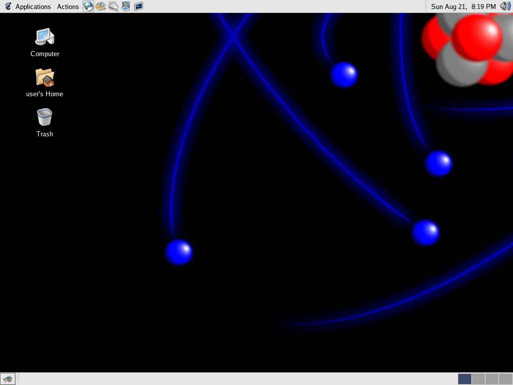 | současná | 15. 2. 2014, 12:49 | 1 024×768 (133 kB) | Sysop (diskuse | příspěvky) | (Snímek obrazovky + A screenshot of Scientific Linux 4.1 default desktop * Author: Green + pochází z Wikimedia Commons, kde má status – Toto dílo je svobodný software; můžete jej šířit nebo upravovat podle podmínek GNU General Public License) |