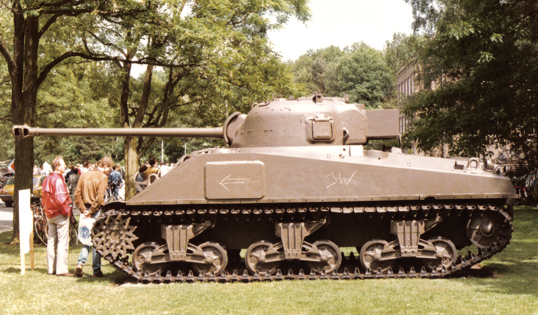Fotografie + English: Sherman V Firefly at Amersfoort Cavalry Museum, has German muzzle brake