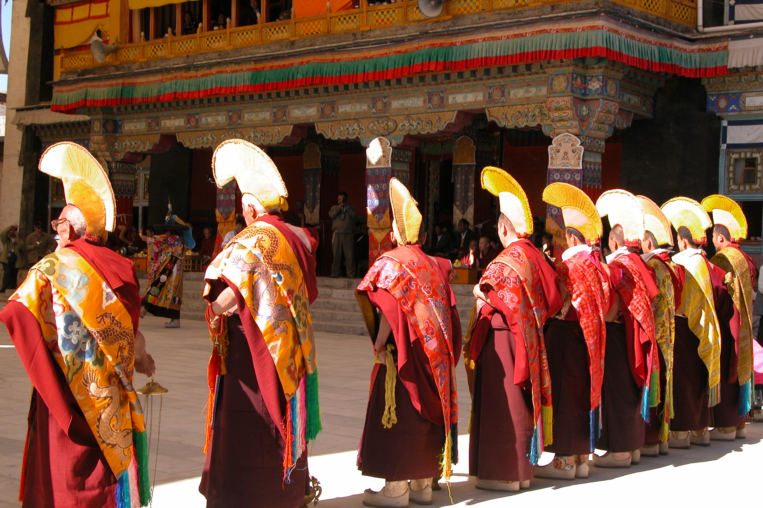 Fotografie + Description: Shigatse Monks at Tashilhunpo Monastery, Tibet