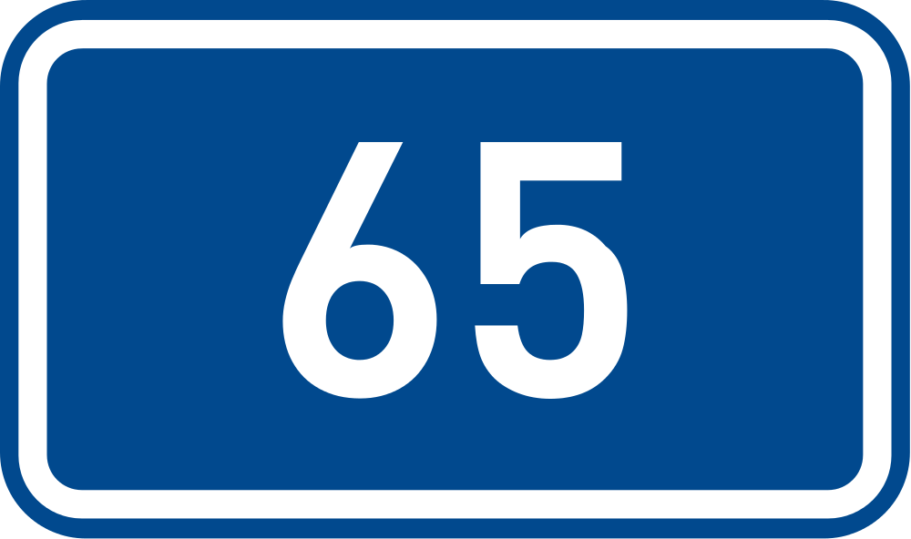 Symbol + Description: Sign of 1st class road 65 in the Czech Republic