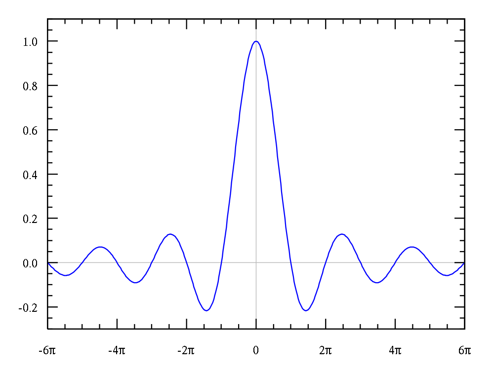 - English: Graph of the unnormalized sinc function sin(x)/x.