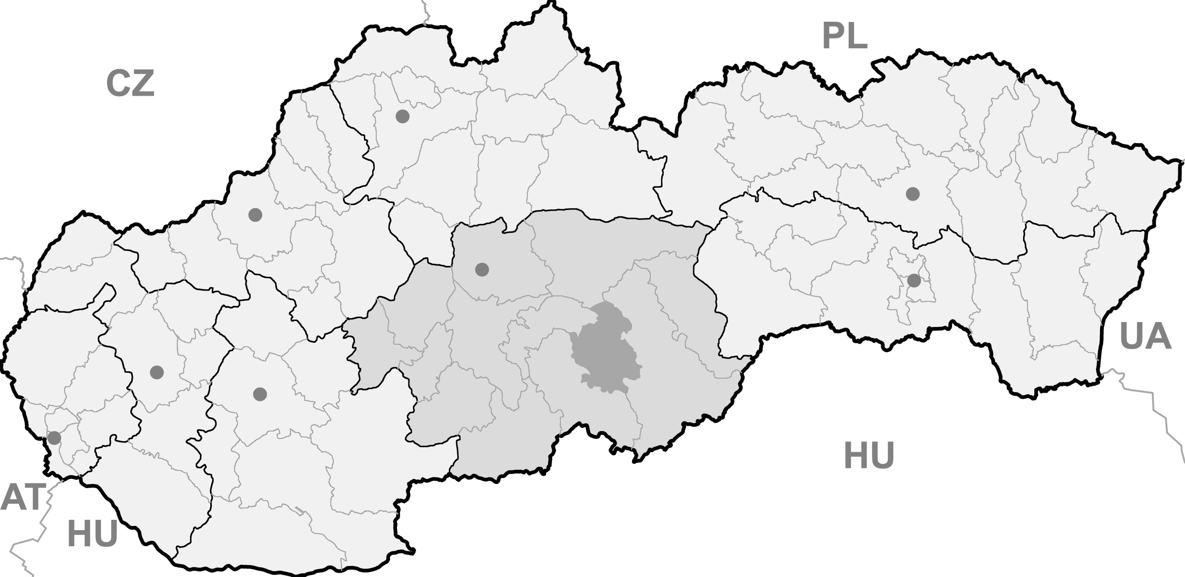 Mapa + English: Map of Slovakia, Poltár district and Banská Bystrica region highlighted