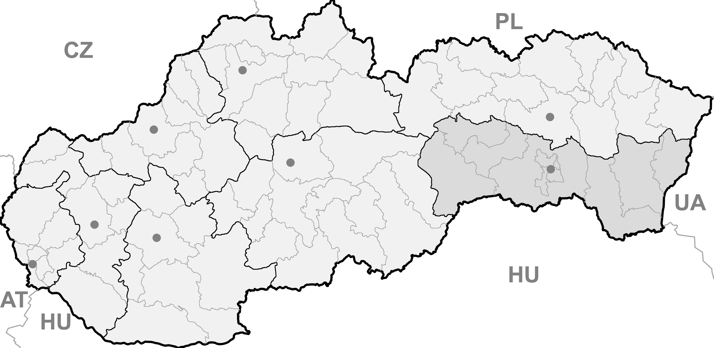 Mapa + English: Map of Slovakia, Košice region highlighted