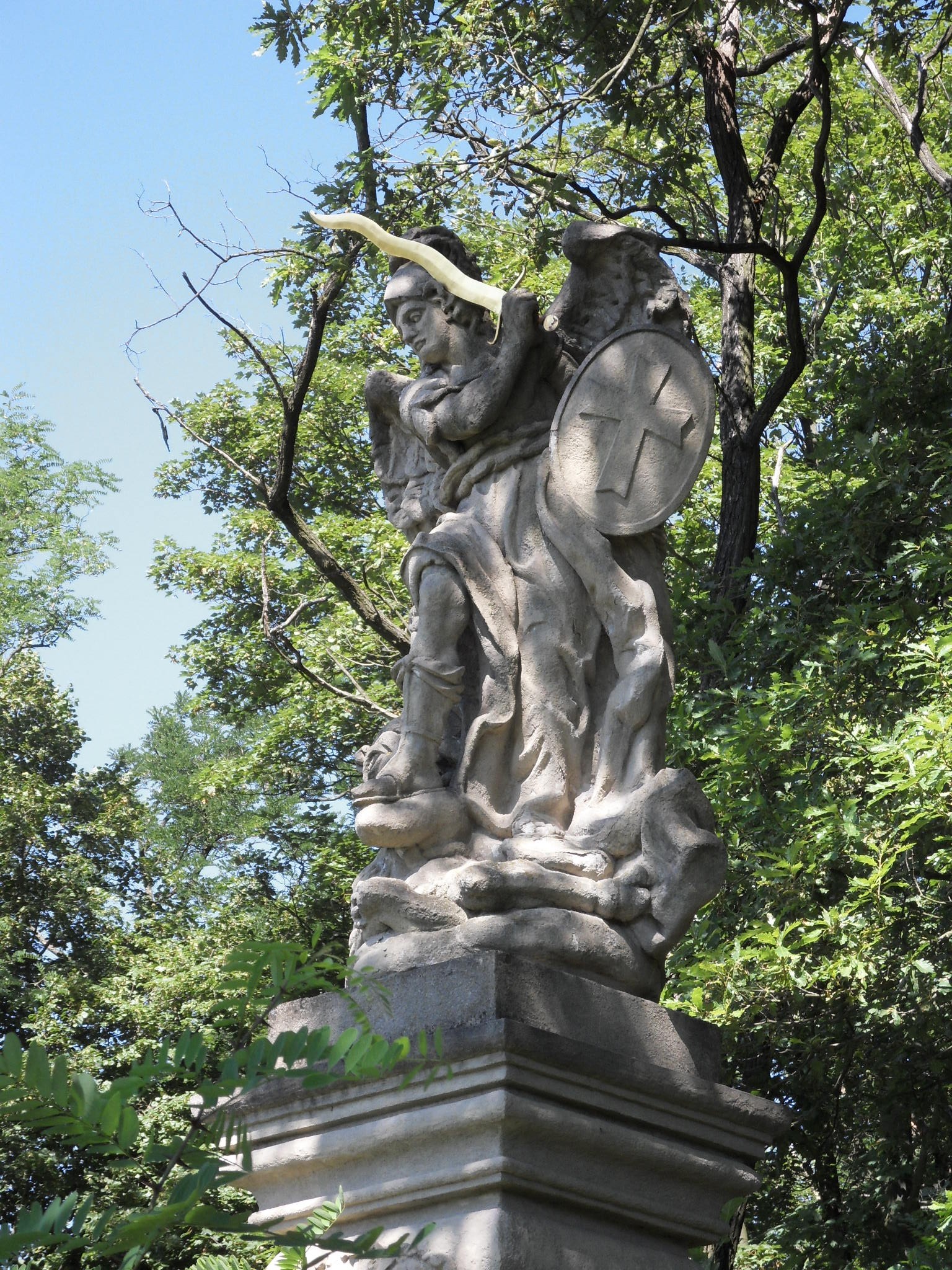 Fotografie + Čeština: Socha Archanděla Michaela, úpatí návrší Ukřižování, obec Bohušov u Spáleného Poříčí, okr.Plzeň-jih