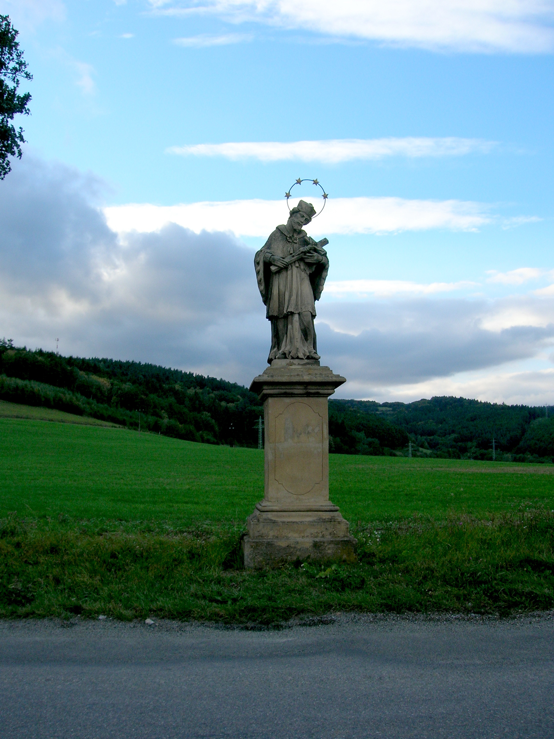 Fotografie + Description: Socha sv. Jana Nepomuckého před Lomnicí