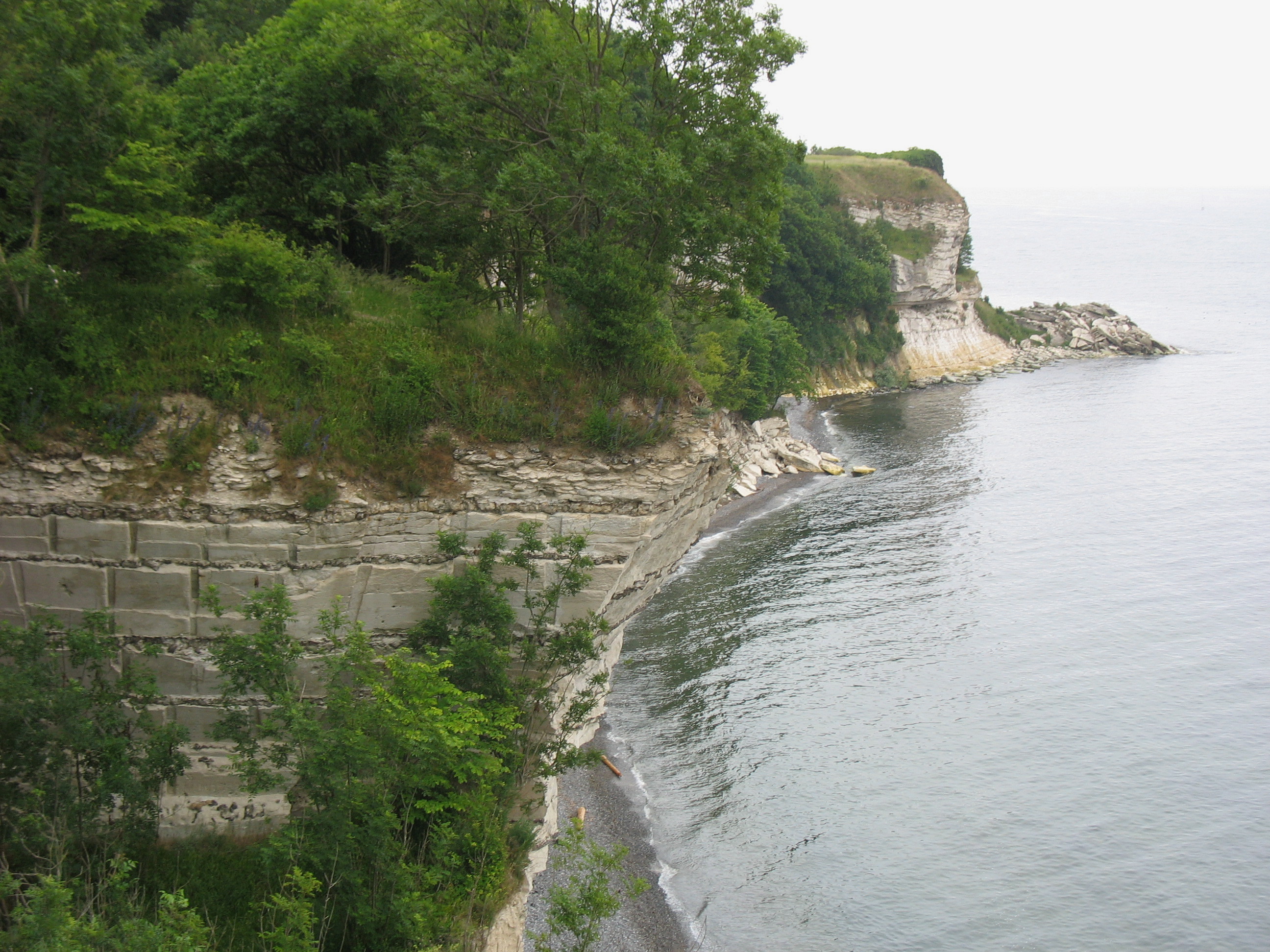 - English: The cliff "Stevns Klint" located in South Zealand, east Denmark.