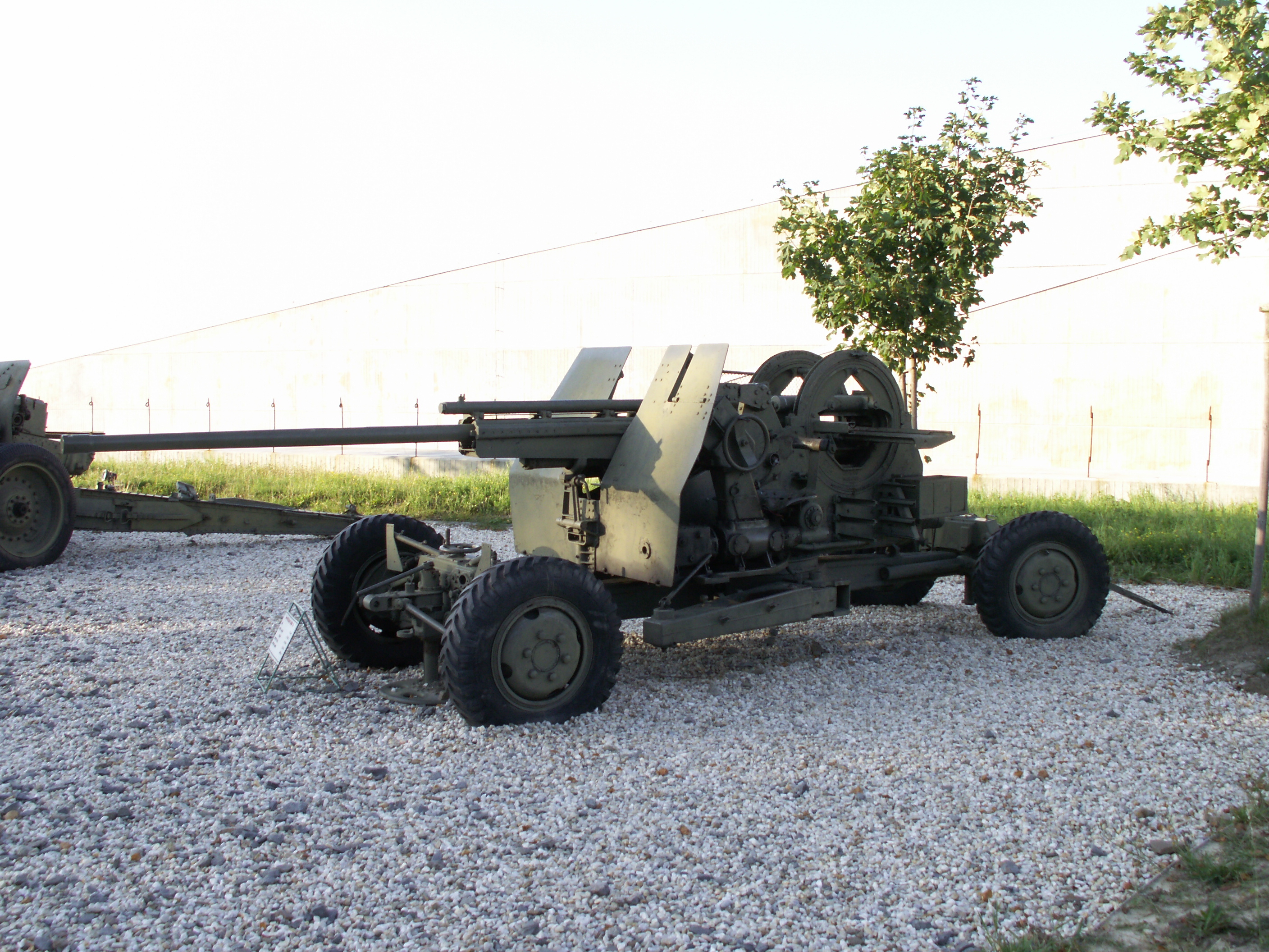Fotografie + Description: vojenská technika u památníku války Hrabyně, 57 mm protiletadlový kanón
