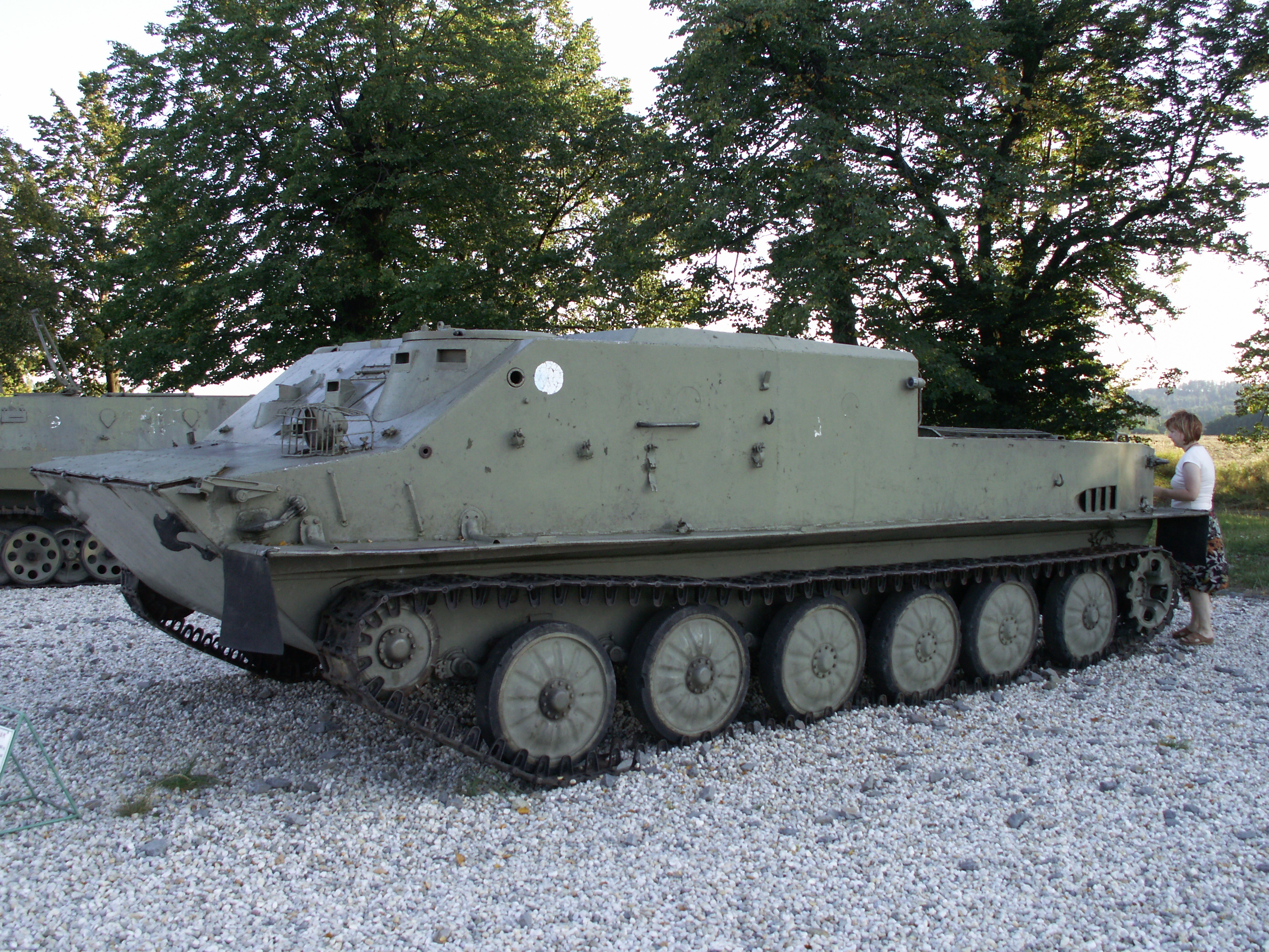 Fotografie + Description: Vojenská technika vystavená u národního památníku války Hrabyně – obrněný transportér BRT 50 PK