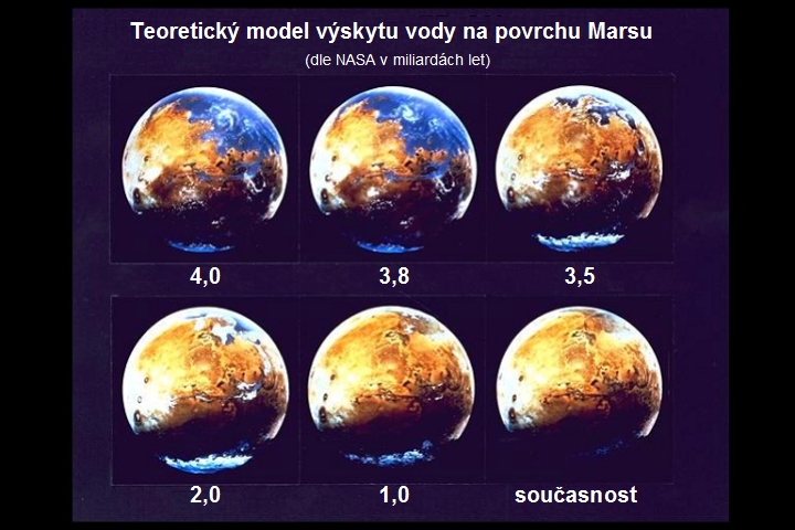 Fotografie + English: History of water on Mars, by NASA. Czech version. Translated from English.