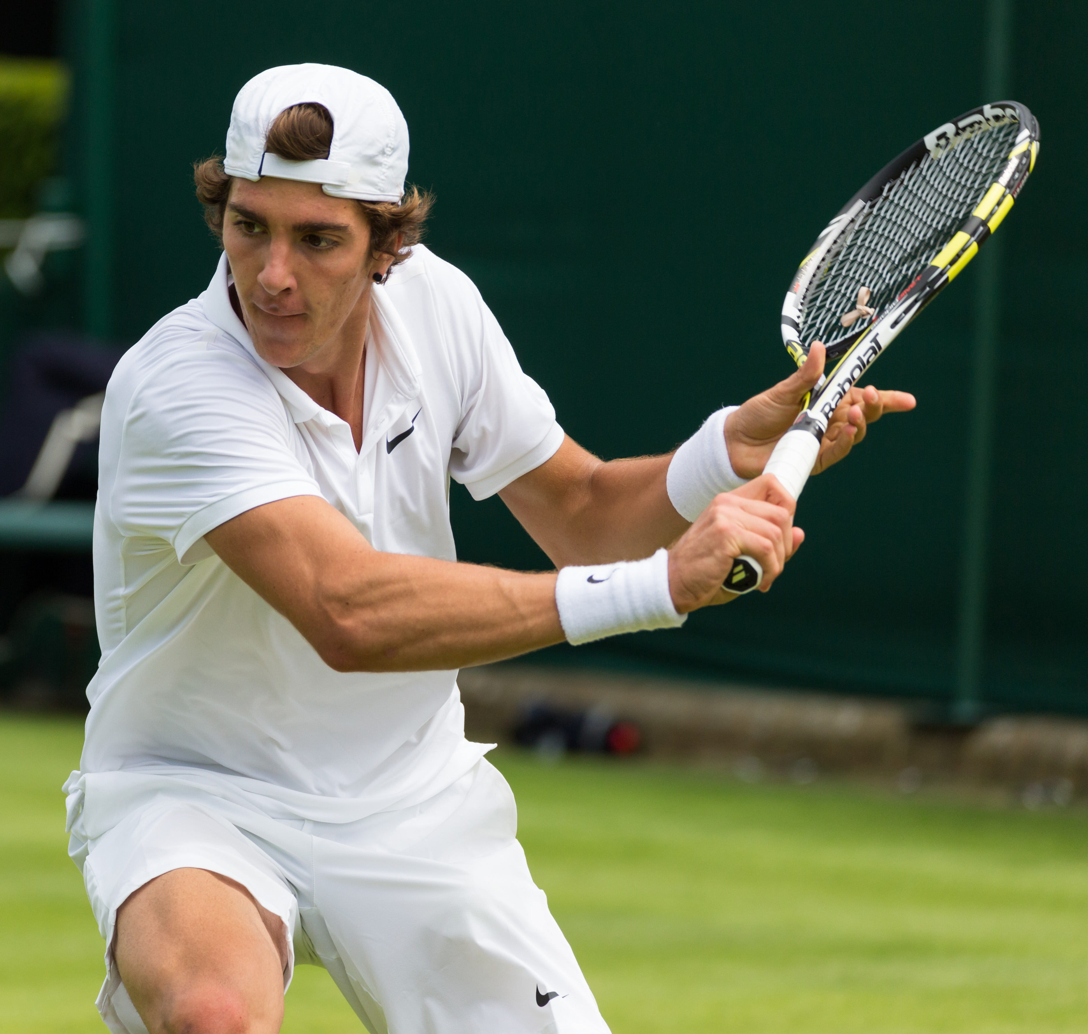 Fotografie + Description: Thanasi Kokkinakis competing in the first round of the 2015 Wimbledon Championships.