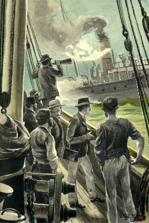 Obrázek + English: An illustration from Jules Verne's novel "The Kip Brothers" drawn by George Roux.