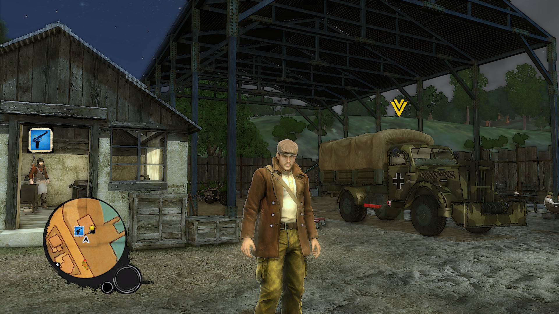 Aktuální snímek počítačové hry + The Saboteur (GOG.com) + pochází z mého vlastního počítače.