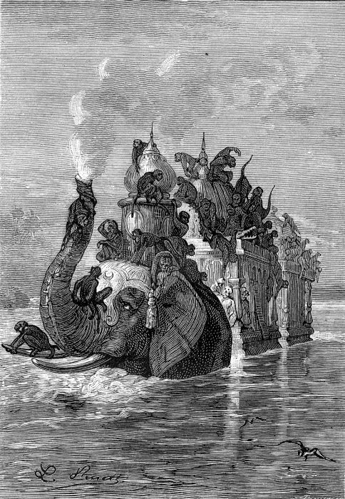 Fotografie + English: An illustration from Jules Verne's novel "The Steam House" drawn by Léon Benett.
