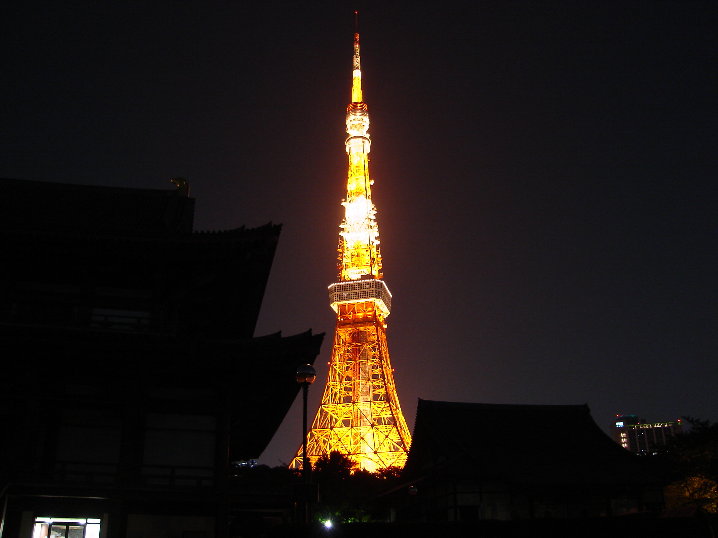 Fotografie + Tokyo Tower at night, seen from the Zojoji temple. More of my photos available at http://www.flickr.com/photos/redjoe + pochází z Wikimedia Commons / Flickr.com , kde má status - Creative Commons Uveďte autora 2.0 Generic (autor: Joe Jones).