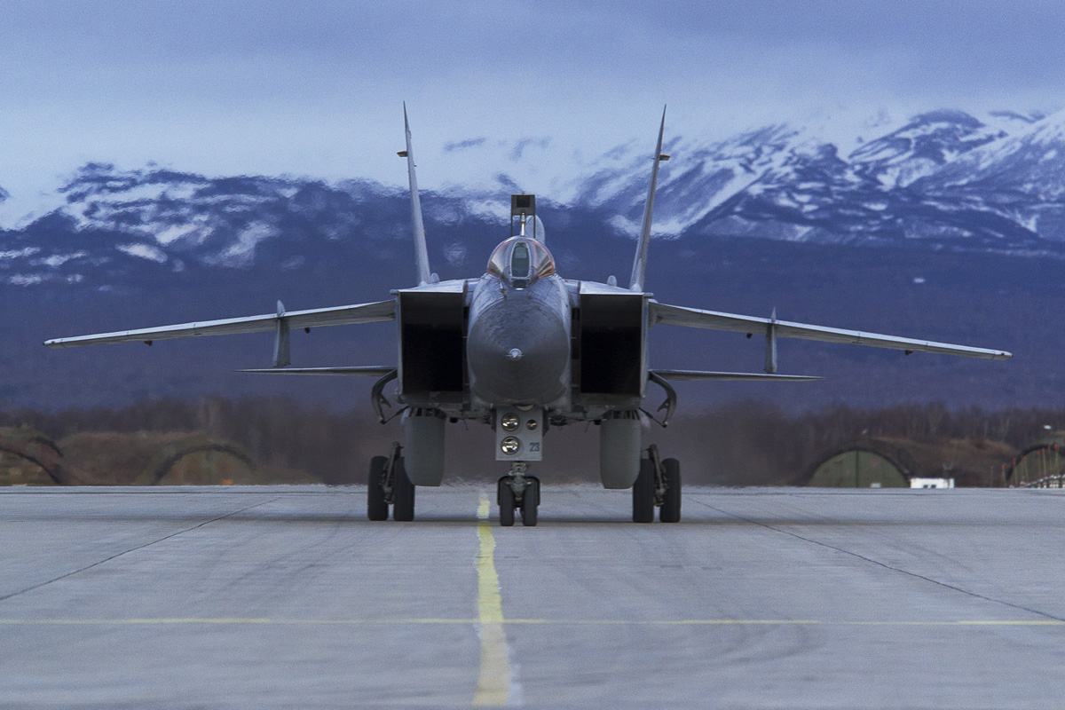 - Русский: Учебно-тренировочные полёты истребителей-перехватчиков МиГ-31 на Камчатке. Аэропорт Елизово.