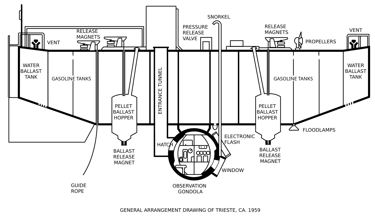 - Redrawing of U.S. Naval Historical Center Photograph NH 96807, General arrangement drawing of Trieste, ca. 1959 Redrawn using Adobe Illustrator by drawing over the image to reproduce the line drawing. Some areas were unclear in the photo, so reasonable interpolations were made.