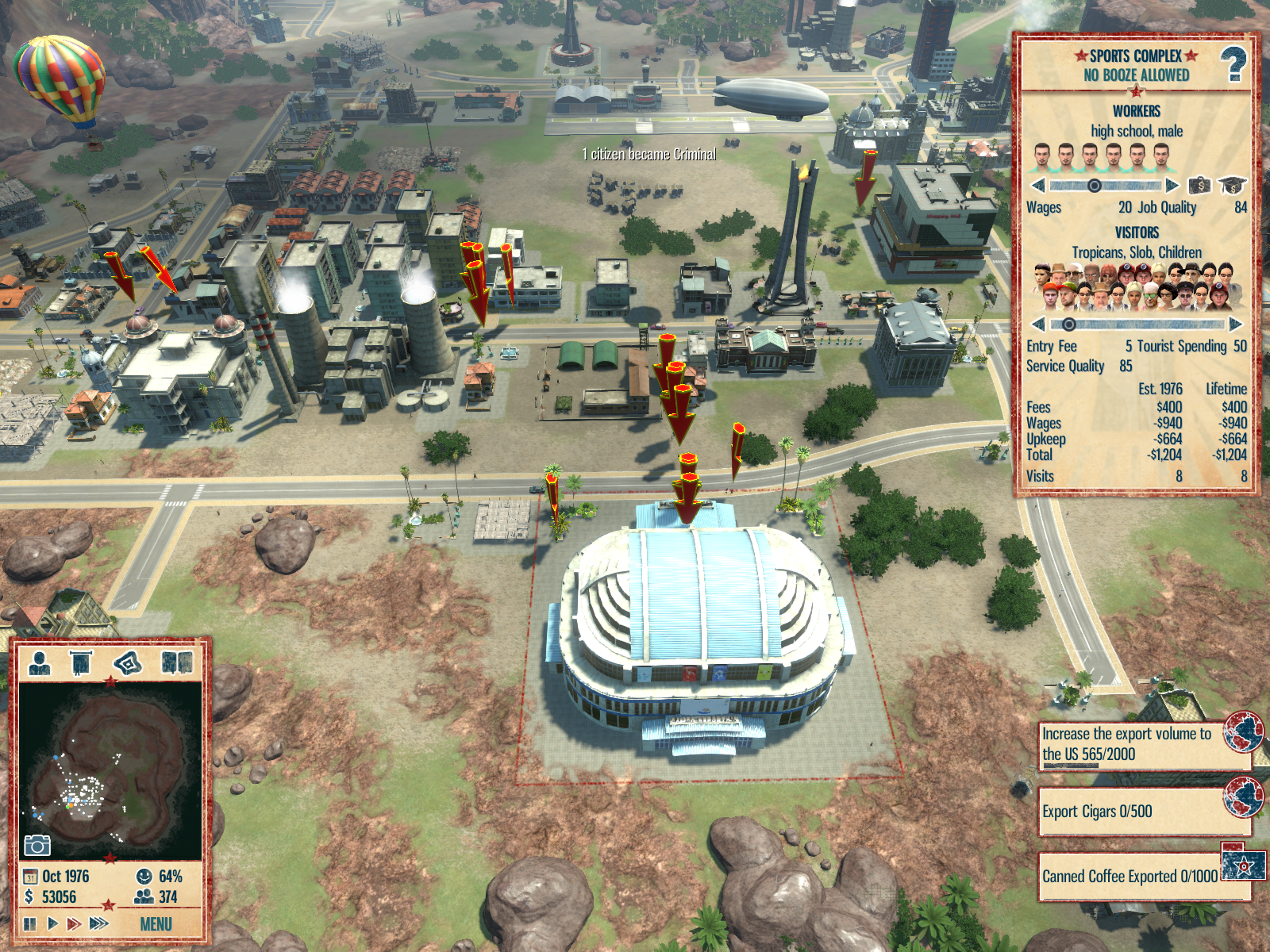 Aktuální snímek počítačové hry + Tropico 4 (GOG.com) + pochází z mého vlastního počítače.
