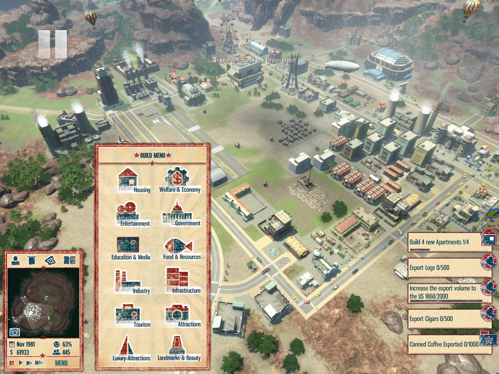 Aktuální snímek počítačové hry + Tropico 4 (GOG.com) + pochází z mého vlastního počítače.