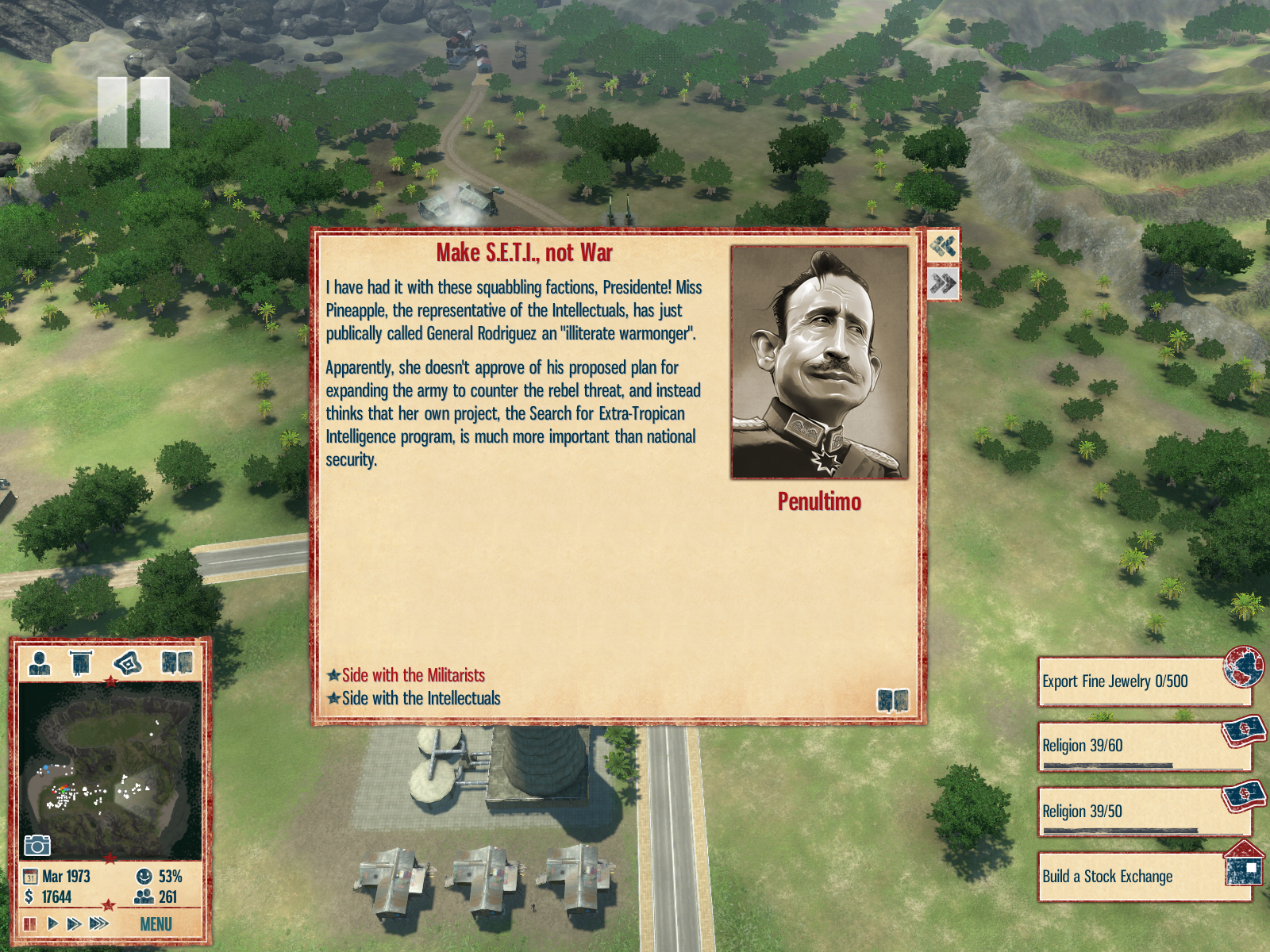Aktuální snímek počítačové hry + Tropico 4 (GOG.com) + pochází z mého vlastního počítače.