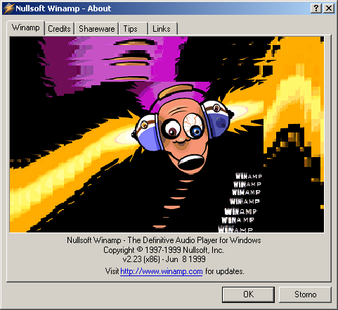 Snímek obrazovky + About Winamp verze + pochází z jednoho z mých počítačů.