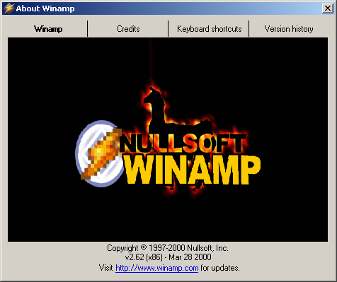 Snímek obrazovky + About Winamp verze + pochází z jednoho z mých počítačů.