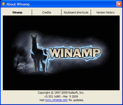 Snímek obrazovky + About Winamp verze + pochází z jednoho z mých počítačů.