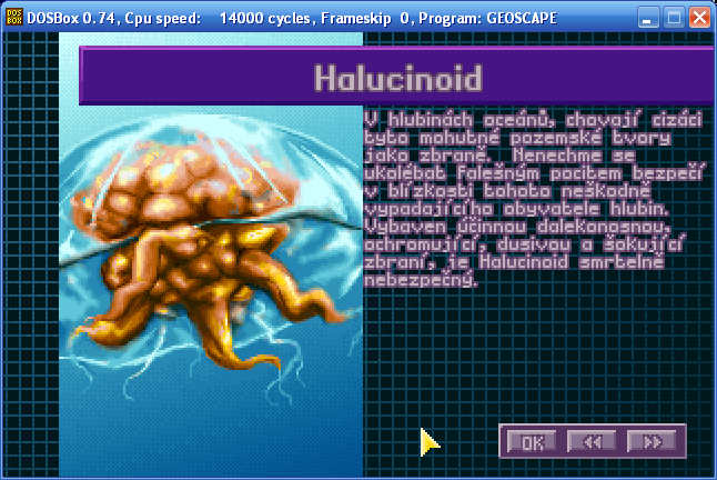 Aktuální snímek počítačové hry + X-COM: Terror from the Deep (v emulátoru DOSBox 0.74) + pochází z mého vlastního počítače.