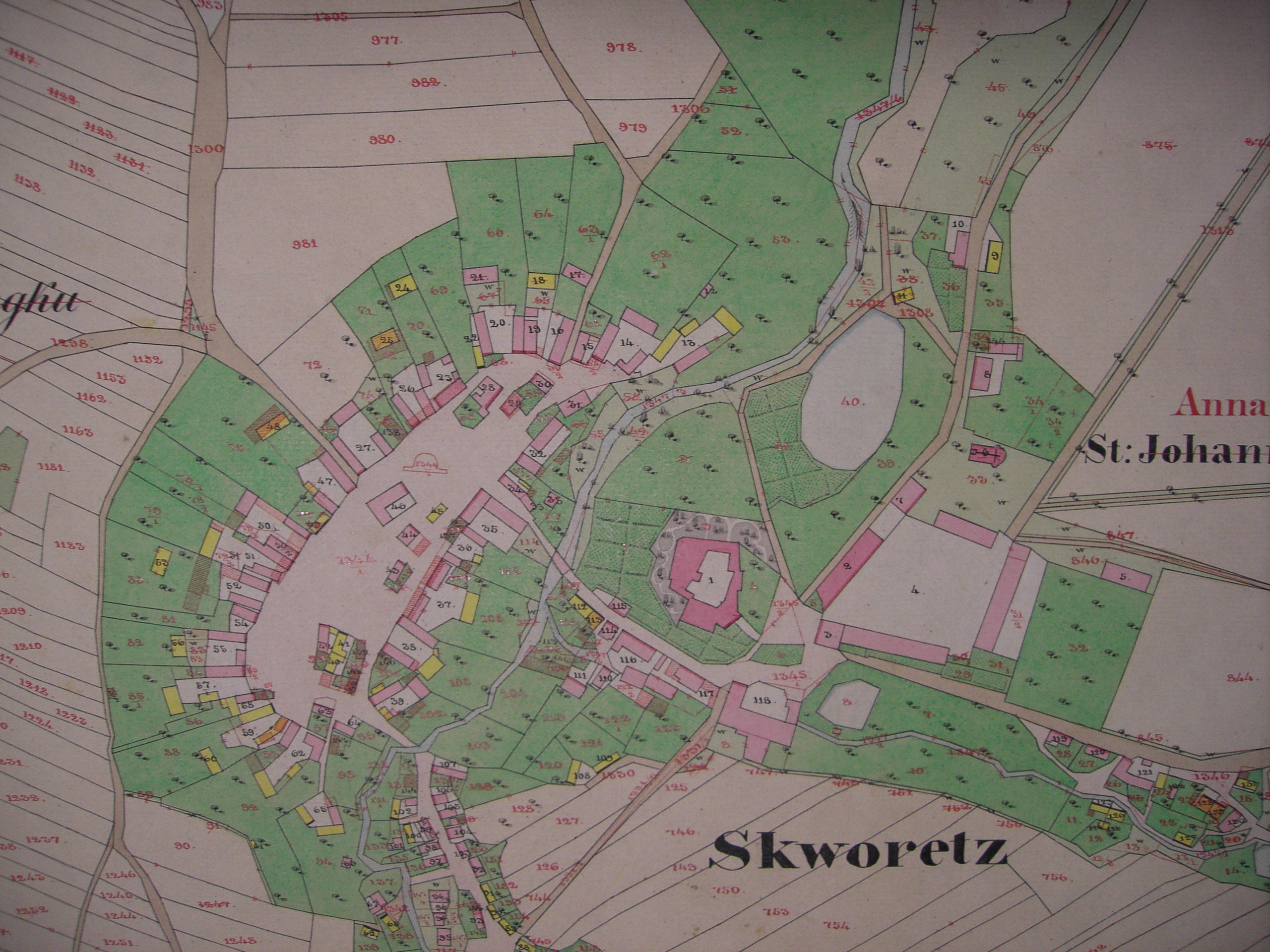 Mapa + English: Military map of Skvorec, 1841