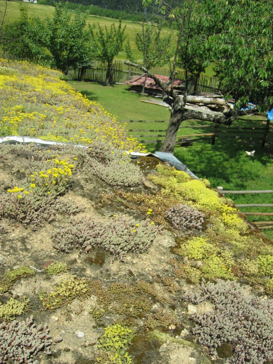- Czech: Zelená střecha na chlívku ve Středisku Chaloupky.