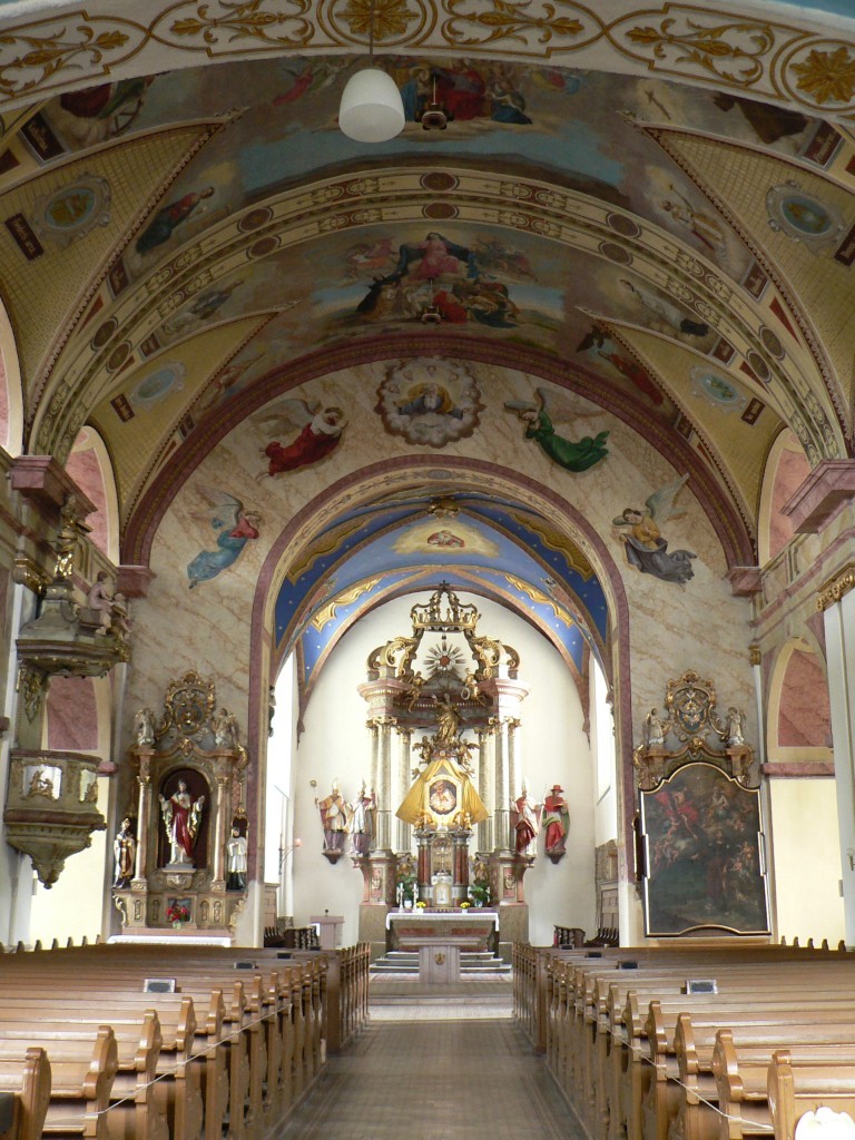 Fotografie + Čeština: Interiér kostela Nanebevzetí Panny Marie ve Zlatých Horách.