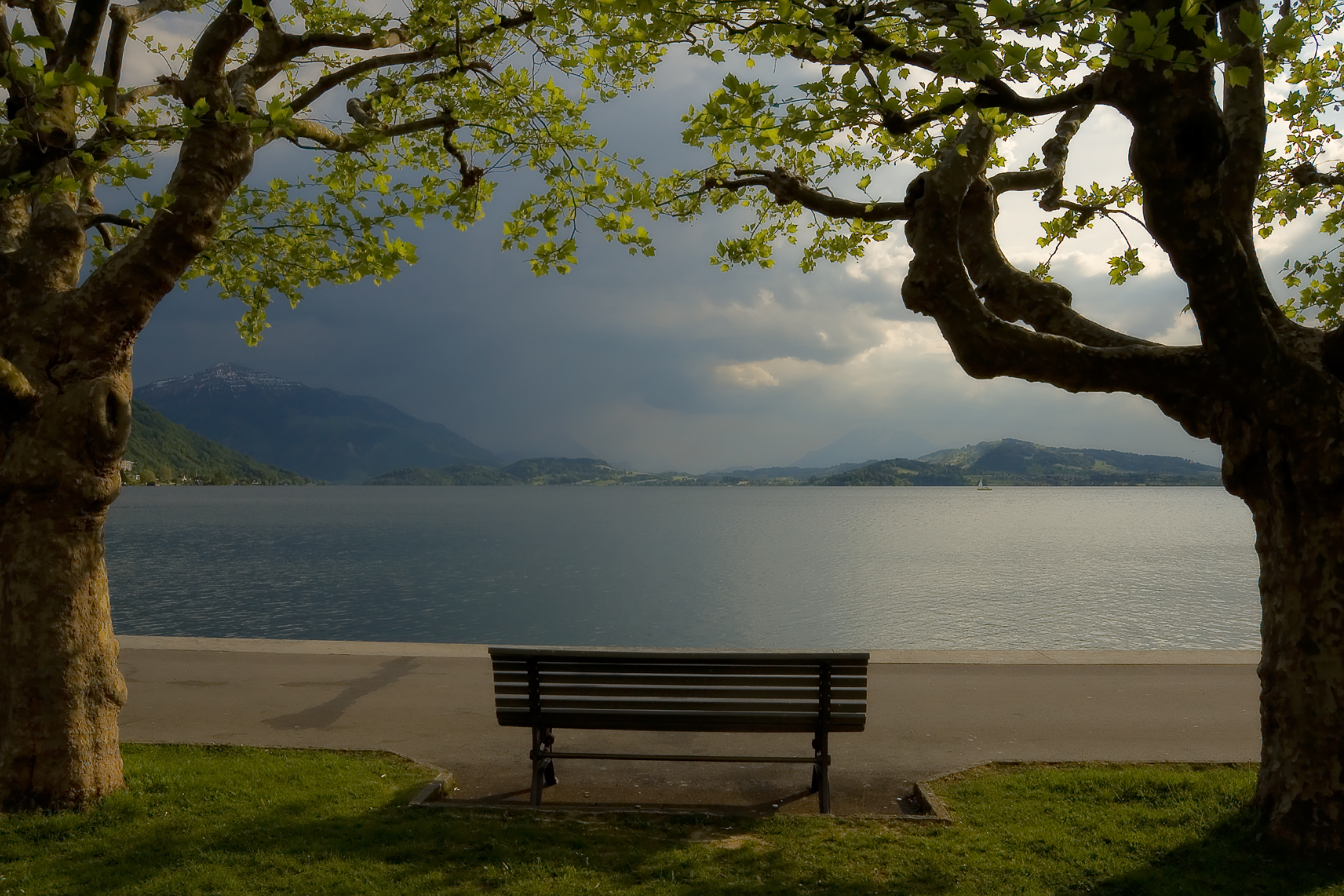 - Français : Le Lac de Zoug avec le Mont Rigi en arrière-plan. Zoug, Suisse.