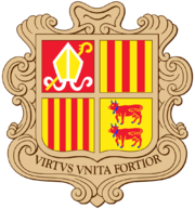 Státní znak Andorry prošel staletou historií, ovšem jeho současná podoba byla přijata roku 1969. Znak tvoří čtvrcený štít se čtyřmi poli, ve kterých jsou zastoupeny symboly subjektů, které od roku 1278 společně ochraňují Andorrské knížectví. Znak je rovněž ve středu státní vlajky.