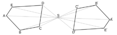 Středová souměrnost se středem v bodě \(S\) je v rovině shodná s otočením o 180 stupňů podle středu \(S\). Trochu jiná je situace v prostoru, kde nemá smysl mluvit o otočení kolem bodu, ale kolem osy.