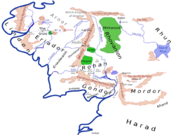 Většina příběhů Tolkienova legendária se odehrává na severozápadě Středozemě, proto je také tato oblast nejlépe popsána. Dále se bude popisovat Středozem po Válce hněvu, o stavu před viz Beleriand. Forodwaith, výstižně nazýván též Ledová spoušť je nejsevernější oblastí Středozemě. Nachází se na sever od Šedých a Železných hor. Na západě je zakončen Poloostrovem Forochel a Ledovou zátokou, na východě volně přechází v Rhûn a dotýká se severných Orocarni. Forodwaith je znám jako sídlo draků. Je zde velká zima jako věčná připomínka Melkorova panování. Orocarni nebo též Červené hory je nejvýchodnější pohoří Středozemě. Někde zde se nacházelo Melkorovo Utumno či Jezero probuzení Cuiviénen. Rhûn je nejvýchodnější oblastí Středozemě. Na mapách tvoří bílá místa s výjimkou jezera Rhûn (Kaspické moře???). Přesto je pravděpodobné, že i zde se vyskytovala pohoří a řeky. Rhûn hraničí na severu s Forodwaithem, na západě s Rhovanionem a Mordorem, na jihu s Chandem a Blízkým Haradem a na východě s Orocarni. Rohan území přibližně uprostřed Středozemě. Z východu sousedí s Gondorem a pohořím Emyn Muil, z jihu jsou to Bílé hory. Jediným snadným přístupem ze západu je Rohanská brána mezi Mlžnými a Bílými horami. Za severní hranici je považován Fangornský les. Protéká zde řeka Entva, ktrá se vlévá do Anduiny. Severovýchod tvoří území Východního a Západního Emnetu. Chand je oblast sevřená mezi Blízkým Haradem, Rhûnem a Mordorem. Blízký Harad je severnější část Haradu, která je také „civilizovanější“ pokud lze mluvit o civilizaci. Podobně jako Chand a Rhun i on tvoří na mapě bílá místa Daleký Harad se nachází na jih od Blízkého Haradu. Stejně jako předchozí, i on tvoří bílá místa na mapě. Popsané jsou pouze Žluté Hory na východě Dalekého Haradu. Jinak Blízký a Daleký Harad odpovídají přibližně Bílé a Černé Africe. Mordor je kromě království také oblast ve Středozemi, hraničící s Rhovanionem na severu, Gondorem na západě, Chandem na jihu a Rhunem na východě. Mordor se sestává ze tří částí - Udûnu, velkého údolí v místě, kde se stýkaly Popelavé hory a Hory stínu; Gorgorothu a Núrnu. Udûn bylo údolí na severozápadě, zcela nevhodné pro rostliny a zvířata. Podobně na tom byl i Západní Gorgoroth, jemuž dominovala Hora Osudu. Východní Gorgoroth sice rovněž nebyl žádná sláva, ale alespoň tam mohlo něco růst. Většinu Mordoru tvořila oblast Núrn, kde se nacházelo jezero Núrn a pár řek ústících do něj Gondor odpovídá přibližně království Gondor na konci třetího věku. Území Gondoru bylo velmi členité. Severní hranici tvoří řeka Želíz a Bílé hory na západě a na jihu omývá Gondor Belfalaská zátoka. Východní hranici tvoří Hory Stínu. Ke Gondoru se může a nemusí počítat sporné území Harondor. Největšími řekami jsou Anduina a Černokořán Rhovanion je polodivoké území mezi Mlžnými, Bílými, Popelavými a Šedými horami, na východě přecházející v Rhûn. Značná část Rhovanionu je tvořena Údolím Anduiny a jejích přítoků Kosatcové řeky, Stříberky a Entvy. Další velkou řekou je Celduina, tekoucí do jezera Rhun. V Rhovanionu se nacházely tři velké lesy - Temný hvozd, Lothlórien a Fangorn. Dalé se zde nacházejí tři bažiny - Kosatcová pole, Mrtvé močály a Ústí Entvy. Krajina mezi Temným Hvozdem a Popelavými horami byla kdysi zahradou Entek, ale Sauron ji spálil a nyní se nazývá Hnědé země. Dalšími rysy Rhovanionu jsou Skalbal a Rhosgobel. Eriador se stal ve třetím věku prakticky synonymem slova Arnor. Hraničí na západě s Ered Luin, na jihu s Hraniční řekou, na východě s Mlžnými horami a na severu s Forodwaithem. Hlavními řekami jsou Mšená, Bouřná, Brandyvýna a Luna. Ve středu Eriadoru se nachází Soumračné vrchy s jezerem Nenuial, a Kraj. Na východní hranici kraje se nachází Starý hvozd Beleriand ve třetím věku tvořily již jen oblasti Forlindon a Harlindon na západ od Ered Luin