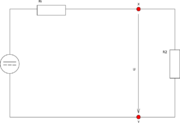 V tomto obvodu bez připojeného reistoru R2 vypočítáme proud který protéká obvodem. Ten se rovná podle Ohmova zákona: