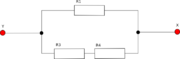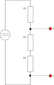 Nejdříve si označíme svorky (např. X a Y) na rezistoru R2 a tento rezistor odpojíme. Tento rezistor tvoří tzv. zátěž.(Obr. 1)