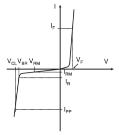 Součástka (VA charakteristika) je velmi podobná zenerově diodě. Jednosměrný transil chrání proti přepětí jedné polarity. Při opačné polaritě se chová jako dioda.