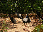 Skupina volně žijících trubačů agami ve Francouzské Guyaně.