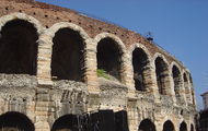 Amfiteátr ve Veroně, dokončený v roce 30, je největší na světě po římském Koloseum a po amfiteátru v Capue nedaleko Neapole. Dříve aréna pojala téměř všechny obyvatele starověké Verony a návštěvníci sem přicházeli z celého Veneta, aby shlédli bitvy a gladiátorské zápasy. Amfiteátr se proto využíval k veřejným popravám, veletrhům, divadelním a operním představením a býčím zápasům. Po zemětřesení v roce 1183 přečkaly pouze čtyři z jejích vnějších oblouků beze škody. Vnitřní arkáda se 74 oblouky však zůstala beze škody. Amfiteátr je 139 metrů dlouhý a 110 metrů široký. Dnes aréna slouží k divadelním představením.