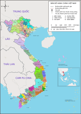 Vietnam se člení na 63 administrativních oblastí; jde o 58 provincií (vietnamsky tỉnh) a 5 měst „pod ústřední správou“ (viet. thành phố trực thuộc trung ương), jež jsou na úrovni provincií.
