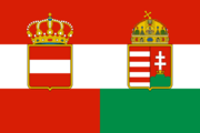 Rakouska-Uherska. Ale vlajka válečného námořcnictva se v roce 1915 změnila tak, že do pravé části byl přidán uherský znak resp. znak dynastie Arpádovců.