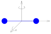Dvouatomovou molekulu se lze představit jako dva pevně spojené hmotné body. Taková částice může kromě posuvného pohybu konat také pohyb rotační kolem dvou vzájemně kolmých os, které jsou kolmé k ose rotace částice. Kromě tří stupňů volnosti připadajících na posuvný pohyb má tedy tato částice další dva stupně volnosti, které připadají na rotační pohyb, tzn. celkem pět stupňů volnosti.