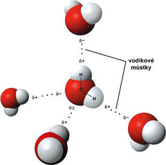 - bod varu - Obecný trend v periodické tabulce prvků je takový, že s rostoucí hmotností se zvyšuje teplota varu. Nicméně vodíkové můstky nám dokazují, že mají vetší vliv na teplotu varu než hmotnost dané látky, a že voda a všechny sloučeniny s vodíkem v druhé periodě - B2H6, CH4, NH3 a HF - jsou výjimkou v tomto trendu.
