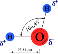 Mimořádné chemické a fyzikální vlastnosti vody jsou důsledkem geometrie její molekuly. Atomy v ní vázané nejsou uspořádány lineárně (v jedné přímce), ale chemické vazby mezi atomy svírají úhel přibližně 105 °. Polaritě vazeb (různé afinitě atomů vodíku a kyslíku) a zmíněné nelinearitě molekuly vděčí molekula vody za svoji polaritu, za existenci vodíkové vazby (zvané též vodíkové můstky) a anomálie následujících vlastností:
