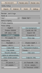 YafaRay využívá pro definování hodnot materiálů jednotlivých 3D modelů umístěných ve scéně vlastní hodnoty a po této stránce rozšiřuje výstupní možnosti interního renderovacího enginu Blenderu.