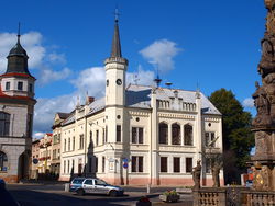 - Budova radnice z roku 1867 na náměstí Svobody, stále slouží svému účelu. Byla postavena na místě původní budovy se základním kamenem z roku 1417.[5]. V horní části průčelí jsou sluneční hodiny, jsou zachovány (a upraveny) i sklepní prostory, zpřístupněné veřejnosti 1x ročně při městských slavnostech.