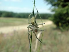 Tento nápadný druh s délkou těla až 1,5 cm si během léta dělá zámotky na vrcholcích rostlin a je zajímavý tím, že se jedná o jednoho z nejjedovatějších pavouků v ČR. Jeho kousnutí působí velkou bolest, někdy může být spojené s horečkou, pocity úzkosti a chvilkovým ochrnutím okolo místa pokousání. Následky kousnutí však většinou do 24 hodin samy odezní. Reakce organismu bývají individuální, není však třeba se tohoto druhu nějak zvlášť obávat.