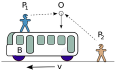| - | [[Soubor:Bus-Inertial.png|thumb|Dvě různé vztažné soustavy: Pozorovatel ''P<sub>1</sub>'' sleduje polohu tělesa ''O'' vůči autobusu ''B'', zatímco pozorovatel ''P<sub>2</sub>'' sleduje pohyb tělesa vůči zemskému povrchu.]] | + | [[Soubor:Bus-Inertial.png|thumb|240px|Dvě různé vztažné soustavy: Pozorovatel ''P<sub>1</sub>'' sleduje polohu tělesa ''O'' vůči autobusu ''B'', zatímco pozorovatel ''P<sub>2</sub>'' sleduje pohyb tělesa vůči zemskému povrchu.]] |