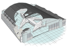 | + | [[Soubor:Hangar-2010.png|thumb|240px|Obecný průřez letištním hangárem]] | ||